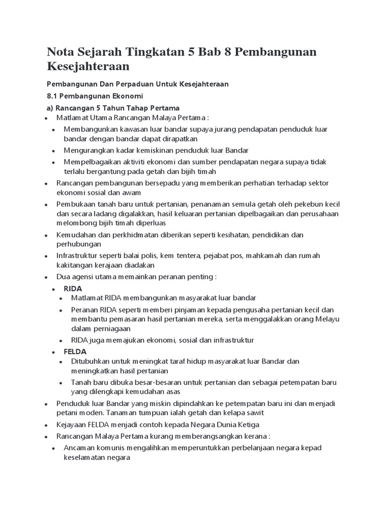 Nota Sejarah Tingkatan 5 Bab 8 Pembangunan Kesejahteraan Pdf