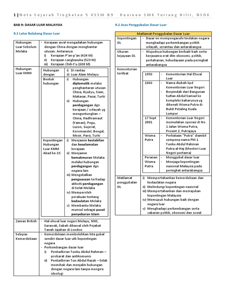 Nota Sejarah Tingkatan 5 Kssm B9 Ruainun Smk Teriang Hilir Nsdk Pdf