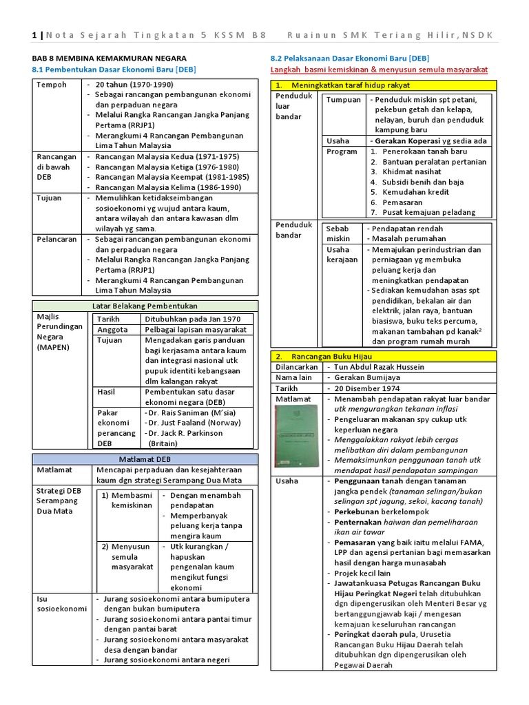 Nota Sejarah Tingkatan 5 Bab 8 Pembangunan Dan Perpaduan Untuk Kesejahteraan Pdf